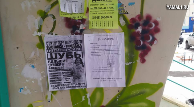 Северяне возмутились массовой расклейке объявлений на подъездных дверях в Ноябрьске. ФОТО