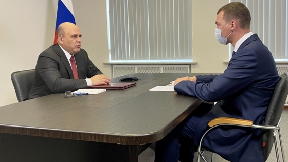 Председатель правительства РФ Михаил Мишустин провел встречу с врио губернатора Хабаровского края Михаилом Дегтярёвым, главными темами стали социально-экономическая обстановка в регионе и насущные проблемы края.