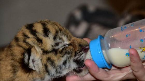 Ветеринары борются за жизнь краснокнижнего амурского тигренка, которого местные жители нашли на дороге в Еврейской автономной области (ЕАО), передает РИА Новости со ссылкой на гендира центра «Амурский тигр» Сергея Арамилева. Тигренка доставили в реабилитационный центр из ЕАО. Жители обнаружили на дороге двух истощенных тигрят. К приезду инспекторов один из них, к сожалению, скончался. Второго выследили, поймали и повезли лечить. «Тигренок - в крайней степени истощения, видимых травм у него нет, поэтому он (сейчас) пробует восстанавливать силы. Пока с ним все хорошо...Все зависит от силы самого тигренка, от иммунитета», - цитирует РИА Арамилева. Гендир центра реабилитации амурских тигров добавил, что юный хищник уже начал есть. Несколько раз в день ему дают пищу с витаминами, которая легко усваивается и не расходует силы организма животного на переваривание. Арамилев отметил хорошее пищеварение тигренка, что является одним из признаков выздоровления. «Мы традиционно не загадываем, но верим, что у тигренка все получится. Со стороны людей все необходимые мероприятия сделаны. Сейчас все зависит от тигренка», - сказал он. По данным центра реабилитации, тигренок – «девочка», ей от 4 до 6 месяцев. Предполагается, что с их матерью – тигрицей Лазовкой – случилась беда. Специалисты ищут хищницу. Тигрицу Лазовку выпустили в ЕАО из Приморья и самец Сайхан с али первыми амурскими тиграми, которых выпустили в природу «мягким» способом.