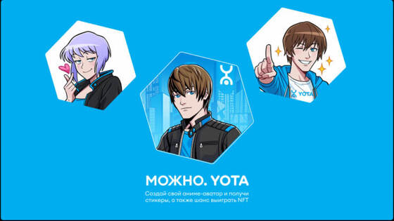 Мобильный оператор Yota, соцсеть «ВКонтакте» и медийное агентство Media Instinct Group запустили проект «Можно.NFT». До 8 октября пользователи «ВКонтакте» могут создать кастомный аниме-аватар и выиграть NFT-токен с ним. За шесть недель проекта среди абонентов всех операторов будет разыграно 156 тыс. уникальных NFT-токенов основной и лимитированной коллекции «Можно.Yota».