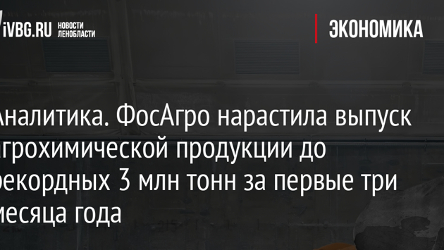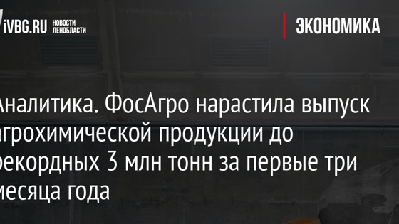 Аналитика. ФосАгро нарастила выпуск агрохимической продукции до рекордных 3 млн тонн за первые три месяца года