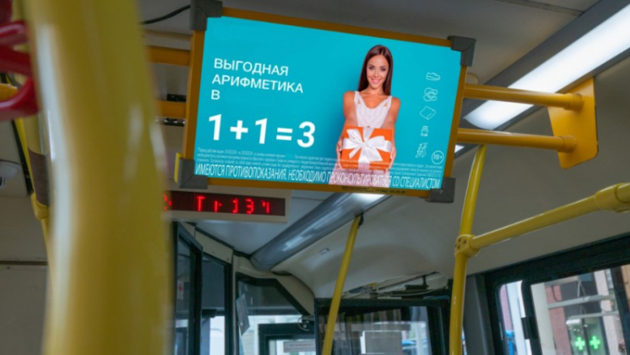 49% — мужчины, 51% — женщины;49% — платёжеспособные люди в возрасте от 25 до 44 лет.Рекламу в транспорте сложно пропустить: её нельзя переключить, и пассажиры неизбежно замечают её содержание.