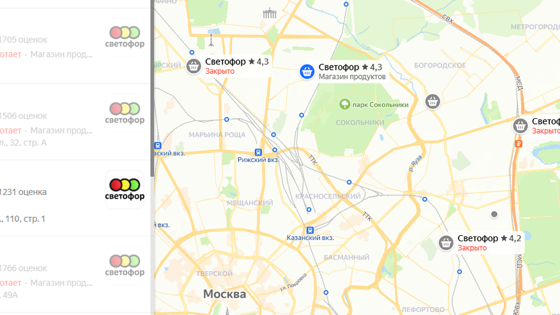 На 28 января в «Яндекс Картах» были помечены как закрытые 6 из 15 магазинов в Москве. В то же время на официальном сайте «Светофора» указано, что на территории столицы расположены 22 торговые точки сети.