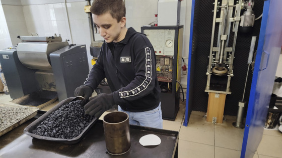 Сезон масштабных дорожных ремонтов ещё не начался, но асфальтобетонные заводы уже запускаются, а специалисты профильной лаборатории заняты анализом материалов, которые используют подрядчики в работе. Проверяют песок, щебень, отсев, битум: от соответствия их параметрам ГОСТа зависит, сколько прослужит новая дорога. – В преддверии строительного сезона в лаборатории мы проверяем рецепты и составы от подрядных организаций. Эта работа идёт в два этапа – выезды для отбора инертного материала и проверка самой асфальтобетонной смеси на соответствие рецепту, – объясняет начальник отдела контроля качества «Курскавтодора» Дмитрий Толстых. – Каждый год рецепты подбираются заново, потому что инертные материалы меняют свою плотность, а битумные вяжущие имеют свои характеристики, которые нужно уточнять для оптимального подбора состава. У щебня, песка, отсева сотрудники лаборатории изучают состав и физико-механические свойства, например, прочность, истираемость. Битум испытывают по трём основным критериям: динамической вязкости, температуре размягчения и хрупкости. – Рецепты составляют сами подрядные организации, а мы их проверяем на соответствие. Потом оцениваем полученную ими асфальтобетонную смесь. А когда подрядчик делает пробную укладку, мы выезжаем на объект и проверяем уплотнение, – продолжает Толстых. Без внимания специалистов лаборатории не обходятся перед запуском и асфальтобетонные заводы. Важно, чтобы всё имеющееся у них оборудование работало исправно, поскольку технические неполадки могут в дальнейшем отразиться на качестве производимых смесей. Одно из основных испытаний битумного вяжущего – метод ускоренного старения. Он позволяет прогнозировать изменение свойств в процессе эксплуатации, например, увеличение хрупкости или ухудшение теплостойкости. Для оценки специалисты отбирают пробы и помещают в специальную печь, где образцы вращают и нагревают. – Через 85 минут мы достаём образец и проверяем на физико-механические характеристики. В частности, при помощи ротационного вискозиметра смотрим динамическую вязкость, – рассказывает инженер 1-й категории отдела качества и инновационных технологий Никита Сапрыкин. – Это позволяет определить температуру перемешивания смеси для асфальтобетонного завода, чтобы его там не пережгли. В нашем случае она должна быть от 160 до 180 градусов. Также узнаём температуру уплотнения – это нужно для того, чтобы готовую смесь во время укладки не перекатали. Истираемость щебня проверяют в полочном барабане. Туда вместе с пробой помещают металлические шары, которые дробят щебень. После 500 оборотов барабана определяют, какая часть от общего количества уцелела, а сколько раскрошилось. – Этот показатель характеризует устойчивость щебня к различным условиям: влажности, морозу, перепаду температур, – конкретизирует Дмитрий Толстых. – Чем ниже истираемость, тем щебень устойчивее. Этим анализ будущей дорожной одежды не заканчивается. Готовые смеси с асфальтобетонных заводов также поступают на изу-чение в лабораторию. После формования их оценивают на соответствие стандартам. Если что-то не так, подрядчик делает работу над ошибками. Заключительный этап – проверка уложенного асфальта уже непосредственно на дороге. Оценку ведут комплексную: подрядчик – как исполнитель, регион