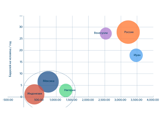 — В своем недавнем докладе «Сравнительная история нефтезависимых экономик конца XX – начала XXI века» вы проанализировали 10 стран, для которых характерна проблема «ресурсного проклятия». На ваш взгляд, опыт какой из стран наиболее актуален сегодня для России? — Я бы не стал приоритезировать: есть позитивный опыт, есть негативный опыт. На мой субъективный взгляд, самый интересный и позитивный опыт для нас — это две территории: Объединённые Арабские Эмираты (ОАЭ) и Мексика. ОАЭ — это пример того, как можно стимулировать развитие, а Мексика — это пример того, как можно будет использовать свое географическое положение. Для России, наверное, лучшей перспективой является стать Мексикой для Европейского Союза. Мы имеем дело с примерно одинаковыми размерами экономик, с одинаковым населением (что в Америке, что в Евросоюзе, что в России, что в Мексике), с одинаковыми проблемами в наших странах. При этом Мексика умудрилась диверсифицироваться за счет сотрудничества с Америкой, а мы совершенно не в состоянии сделать того же самого за счет Евросоюза. При этом у нас есть стратегическое преимущество, которое связано с тем, что у Евросоюза нет нефти и газа. Если Мексика — это наиболее хороший для России пример, то Венесуэла — классическая комедия ошибок. Ангола — важный пример, показывающий, что происходит, когда власть не меняется и консолидирует под себя больше и больше возможностей. Норвегия — прекрасный пример для тех, кто считает, что демократия — это панацея: вот, пожалуйста, демократия есть, а рост ВВП — небольшой. — Вы отмечали, что по степени нефтяной зависимости Россия находится примерно между Венесуэлой, Казахстаном и, частично, Ираном. Можно ли эти выводы перенести в политическую плоскость: означает ли это, что Россия находится в точке бифуркации — между политической стабильностью и потрясением? — Прямолинейно — нет. Если мы говорим про этот кластер, то это вопрос экономический. Но движение от российского кружочка (в системе координат) в ту или иную сторону будет связано с политическими решениями: то есть либо мы пойдем в сторону Венесуэлы – популизм в экономике, закрытие рынков, либо мы идем вниз [к Ирану] — это дальнейшая изоляция, усиление ура-патриотических тенденций, это замыкание экономики и более высокое ее регулирование. Нам, конечно, следует двигаться туда, где значительно более высокая эффективность использования нефти в ВВП, там, где находится Канада и та же самая Мексика. — Вы не раз отмечали, что нефть является фактором стабильности для России и ее нельзя скидывать со счетов. Однако не кажется ли Вам, что это стабильность иллюзорна и говорит о хрупкости системы — как нависающий над головой Дамоклов меч, который рано или поздно сорвется и упадет? — На данный момент мне это совершенно не кажется иллюзией. Стабильность — она и есть стабильность. Вы это сами видите — можете посмотреть уровень поддержки власти, можете посмотреть уровень социальной активности. Но – только на данный момент. Может быть, кризис будет одним из средств перевести экономику на другой уровень. В этом смысле хорошо было бы, чтобы этот переход не был криминальным. Хорошо было бы, чтобы он не привел к распаду страны, к гражданской войне, например. На самом деле, глядя на опыт Украины, мы можем много увидеть, хотя Украина никогда не была такой ресурсн