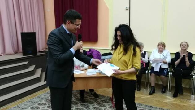 Благодарность руководителя Департамента здравоохранения города Москвы Алексея Хрипуна получила заведующая вторым филиалом консультативно-диагностической поликлиники № 121 Седа Беглярова. Вручение награды состоялось в эту среду во время встречи главы управы района Южного Бутова Владимира Фалеева с населением. Седа Беглярова удостоилась награды за многолетний добросовестный труд в системе московского здравоохранения. Фото: группа в социальной сети «Фейсбук» «КДП 121 - врачи и пациенты».