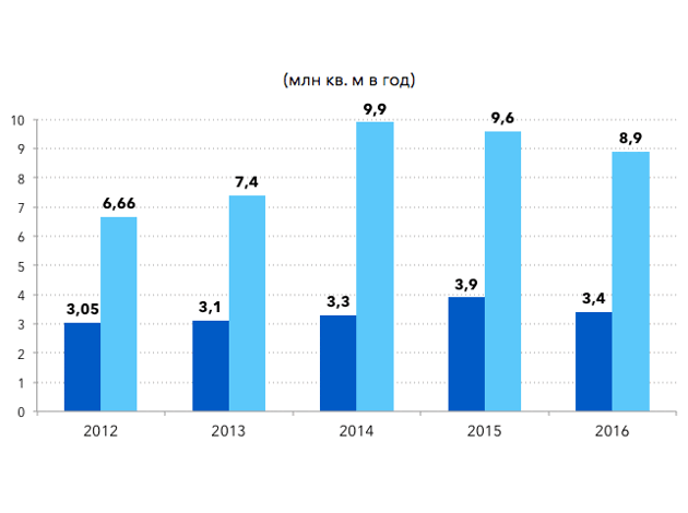 В конце февраля в Москве была инициирована новая программа сноса пятиэтажек. Согласно основным ее параметрам в ближайшие годы в границах города, включая и новые территории, будет снесено 25 млн квадратных метров жилья или 7,5 000 домов устаревших серий, в которых в настоящее время проживает 1,6 млн человек. По нашим оценкам, с учетом современных стандартов строительства, на освобожденных после сноса пятиэтажек территориях возможно строительство до 60-70 млн квадратных метров нового жилья. Для сравнения, на всей территории России в 2016 году было введено в эксплуатацию 80 млн квадратных метров, при этом в 2015 году был достигнут постсоветский максимум по объемам введенного жилья — 85 млн квадратных метров. Для отдельно взятого города, это просто колоссальная цифра, и второй этап программы сноса пятиэтажек будет в 4 раза более масштабным, чем первый, начатый в 1999 году. При этом стоит отметить, что первая программа продолжается уже 18 лет, и при этом затрагивает 1 722 «хрущевки» общей площадью более 6 млн квадратных метров. Попробуем разобраться, насколько реалистичны эти планы. Вопрос 1: достаточны ли текущие строительные мощности столичных застройщиков? В 2012-2016 годах в Москве ежегодно вводилось 3,1-3,9 млн квадратных метров нового жилья, таким образом, сроки реализации этой программы могут составить, по крайней мере 17-20 лет, что сопоставимо по срокам с первой программой, инициированной в 1999 году и действующей до сих пор. Однако, как мы помним, сроки окончания первой программы сноса неоднократно сдвигались, поэтому не исключено, что та же участь постигнет и этот этап сноса. К тому же, расчеты по срокам приведены при условии сосредоточения сил застройщиков именно на этой программе, что выглядит не совсем реалистично, так как интерес представляют также программа редевелопмента промышленных зон и развитие на новых территориях. Каков потенциальный объем мощностей у застройщиков в московском регионе? Мы видим, в среднем объемы ввода в Москве составляли примерно 3,5 млн квадратных метров, при этом девелоперская активность смещалась в сторону Подмосковья и новых территорий, что было связано с дефицитом площадок под застройку в пределах МКАД. Таким образом, если оценивать потенциал столичных застройщиков с точки зрения фактических объемов ввода, то в Москве возможно строительство 4,5-6 млн квадратных метров силами уже сложившегося пула игроков. Возвести данные объемы силами только лишь казенного предприятия Управление гражданского строительства (УГС) невозможно, поэтому очевидно, что город планирует привлекать частных инвесторов и девелоперов. Какие компании могут стать основными участниками «большой стройки» в Москве? Мы полагаем, что интерес могут проявить все основные присутствующие в регионе застройщики, в первую очередь ГК ПИК (потенциальный объем строительства 1,5-1,8 млн квадратных метров в год), поглотившая в прошлом году «Мортон» и удвоившая тем самым производственные мощности. По данным СМИ, ГК ПИК уже приостановила переговоры по приобретению новых земельных участков до появления конкретики по условиям участия в программе сноса пятиэтажек. Вторым наиболее очевидным претендентом может стать ФСК «Лидер», второй по объему мощностей застройщик в регионе (0,9-1 млн квадратных метров в год). Третьим наиболее вероятным кандидатом является Кон