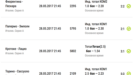 Клиент БК «Лига Ставок» собрал экспресс с коэффициентом 462.05, поставив на семь матчей 38-го тура Серии А, проходивших 28 мая. Все события в экспрессе сыграли, и сумма выигрыша составила 145 545,75 рублей. Об этом «Чемпионату» сообщили в компании. Отметим, что составитель экспресса в шести из семи случаев ставил на индивидуальные тоталы команд.
