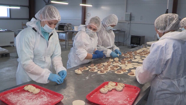 Сейчас на птицефабрике работают около 150 человек: производят мясо птицы, колбасы и полуфабрикаты. Например, Наталья, лепит пельмени. За смену выходит 50 килограммов. Хотя еще пару месяцев назад и понятия не имела как это делается