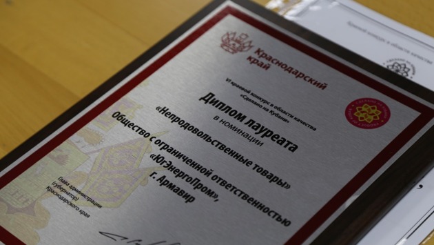 В администрации города прошло торжественное мероприятие, на котором чествовали армавирские предприятия-лауреаты VI краевого конкурса в области качества «Сделано на Кубани». В церемонии награждения приняли участие первый заместитель главы города Александр Руденко, исполняющий обязанности директора государственного казенного учреждения Краснодарского края «Центр развития торговли» Виталий Ростовский.