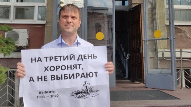 Политик Григорий Гришин 13августа 2020 года провел уцентрального входа визбирательную комиссию Саратовской области одиночный пикет против введения врегионе так называемого «трехдневного голосования». Вконце сентября 2020 года полиция составила вотношении члена «Яблоко» протокол обадминистративном правонарушении постатье 20.2 КоАП (Нарушение правил проведения публичной акции). Кировский районный суд переквалифицировал дело ивменил активисту статью 20.6.1 КоАП (Невыполнение правил поведения при чрезвычайной ситуации или угрозе еевозникновения— прим. ред.). Заакцию протеста впериод пандемии COVID-19 ему назначили наказание ввиде