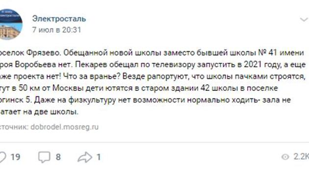 Баллотирующийся в Мособлдуму глава Совета депутатов Электростали Владимир Пекарев опубликовал предвыборное обращение к избирателям. Однако журналисты полагают, что до выполнения взятых на себя обязательств дело у него так и не дойдет. Недавно стало известно, что Пекарев будет баллотироваться в Мособлдуму от партии «Единая Россия» от 25-го одномандатного округа. На праймериз депутат почти вдвое обошел своего ближайшего конкурента. Журналисты считают, что в этом ему, вероятно, помог его бывший деловой партнер, а ныне председатель Мособлдумы Игорь Брынцалов. Обращаясь в своем предвыборном ролике к избирателям, Пекарев заявил, что намерен использовать свой опыт для работы на более высоком уровне. О каком именно опыте говорил кандидат, остается неизвестным, однако в СМИ его деятельность обсуждалась неоднократно. Например, депутат мог продвигать деловые интересы своей дочери, которая имеет связи с главным городским охранным предприятием. Также журналисты выяснили, что сестра Пекарева, Татьяна, управляет муниципальным учреждением в сфере ритуальных услуг в подмосковном городе Ногинске и могла участвовать в картельных сговорах. Что касается слов Пекарева о его опыте, то СМИ проверили, как он выполняет данные ранее обещания. В 2018 году он заявил, что собирается сохранить и запустить в работу в 2021 году школу №41 в поселке Фрязево, однако этот вопрос не решен до сих пор. Также жители Электростали раскритиковали так называемое «облагораживание территорий» на улицах Первомайской и Ленина, одобренное лично Пекаревым. Горожане заметили, что во дворах их домов начали вырубать деревья для дальнейшего асфальтирования территории и создания парковок, хотя предполагалось, что во дворах высадят новые деревья. Инцидент стал поводом к коллективной жалобе жильцов на имя главы Комитета по дорожной деятельности и благоустройству Артема Зайцева. В 2017 году Пекарев одобрил постановление об утверждении программы «Формирование современной городской среды городского округа Электросталь Московской области», в которой утверждалось, что будут производиться лишь ремонт асфальтового покрытия и благоустройство без существенного визуального искажения, однако фотографии местных жителей говорят об обратном. При этом в документе упоминается «важнейшее условие» проведения работ, а именно – должно быть учтено мнение местных жителей, которое в итоге было проигнорировано исполнителем – ООО «Дорожное Строительное Управление-19» («ДСУ-19»). Примечательно, что «ДСУ-19» сражалось за госконтракт всего лишь с одним конкурентом – ООО «Строймонтажконструкция». Эта компания давно работает на рынке и обладает хорошей репутацией. А «ДСУ-19» является молодой компанией, которая еще не успела показать себя в полной мере, но контракт в итоге достался именно ей.