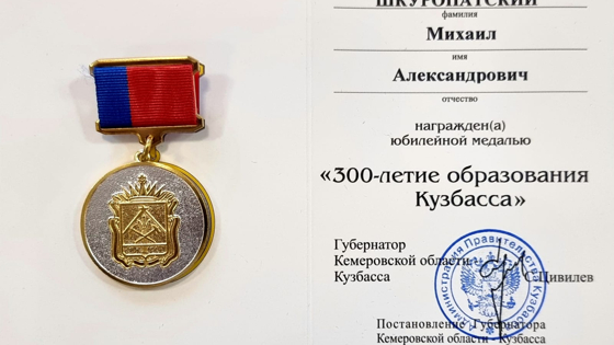 Кроме того, вице-спикер областного парламента Юрий Скворцов вручил Михаилу Шкуропатскому Почетный знак Законодательного Собрания Кемеровской области – Кузбасса "Петр Чихачев". Награду от парламента региона также получил отец учредителя "Кузнецкого Альянса" Александр Шкуропатский, который также работает в компании.