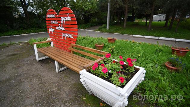 Скамейку с сердцем представили воспитанники Центра помощи детям Вологды на конкурс «Цветущий город»