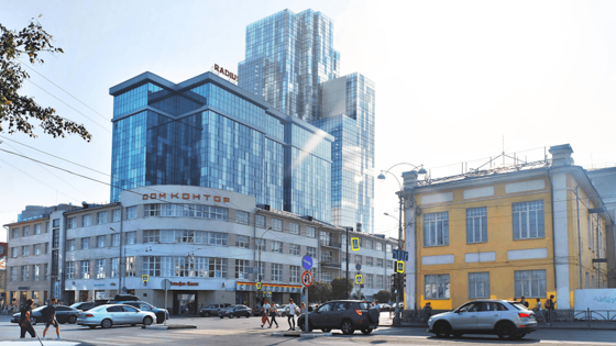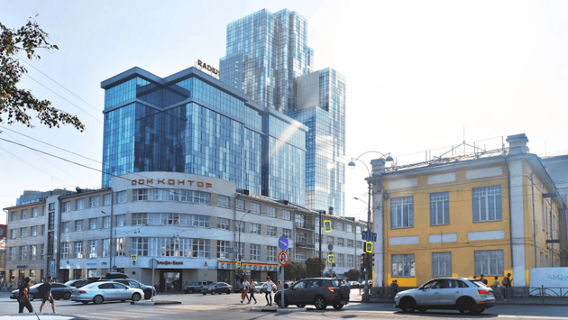 Стометровый гостиничный комплекс "Радиус-2" предполагается разместить на задворках памятника конструктивизма Дом контор (8 Марта, 10). План по его строительству 28 октября презентовал членам градсовета главный архитектор проектной фирмы "Востокпроект" Евгений Трубецков. В роли заказчика проекта комплекса выступила компания "Регент".