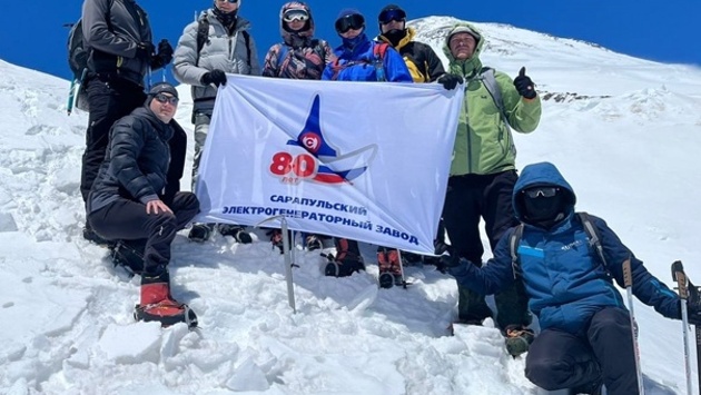 Работники Сарапульского электрогенераторного завода водрузили знамя на Эльбрусе
