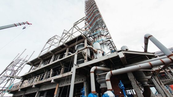 Строительство установки идет ударными темпами. В этом убедились и журналисты. Пройдя вводный инструктаж и переодевшись в специальную форму, представители СМИ оказались в центре событий. Нефтехимики рассказали, что прогресс строительно-монтажных работ составляет 62%.