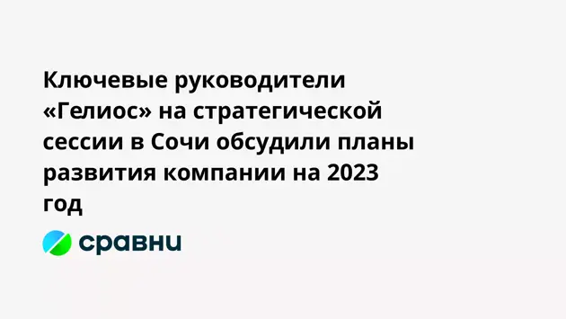 «Гелиос» серьезно подходит к планированию своей работы на предстоящий год. Стратегия развития «Гелиос» на 2023 год стала ключевой темой декабря. Для ее обсуждения на федеральной территории Сириус в Сочи была организована сессия стратегического планирования с участием ключевых руководителей компании.