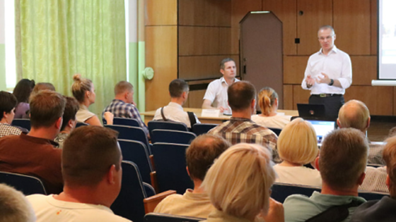 Глава г.о. Пущино Алексей Воробьев и депутат Госдумы Александр Коган представили отчет о работе в прошлом году коллективу МУП «Тепловодоканал».