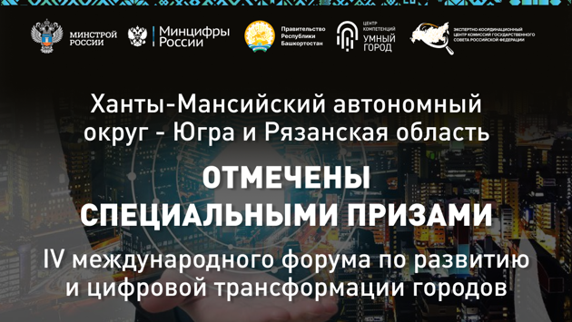 По итогам работы IV Международного форума «Умный город – Умная страна», который прошел 26-28 июля в Уфе, специальными призами за вклад в реализацию проекта «Умный город» были награждены Ханты-Мансийский автономный округ – Югра и Рязанская область.