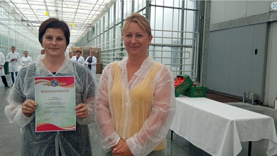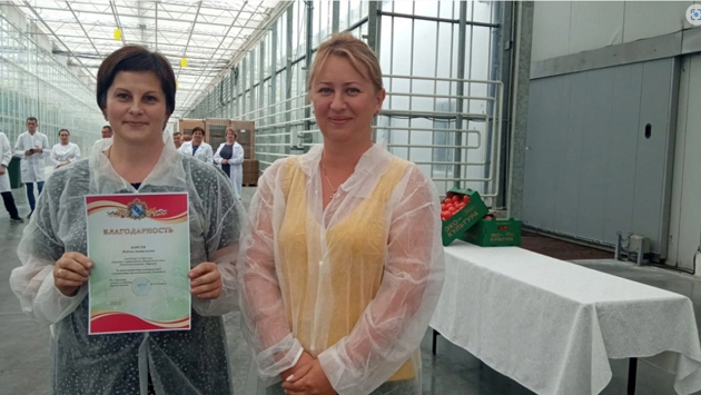 Осмотрев производственные площадки тепличного комплекса «Курский», Наталья Гончарова вручила грамоты Минсельхоза Курской области передовикам производства.