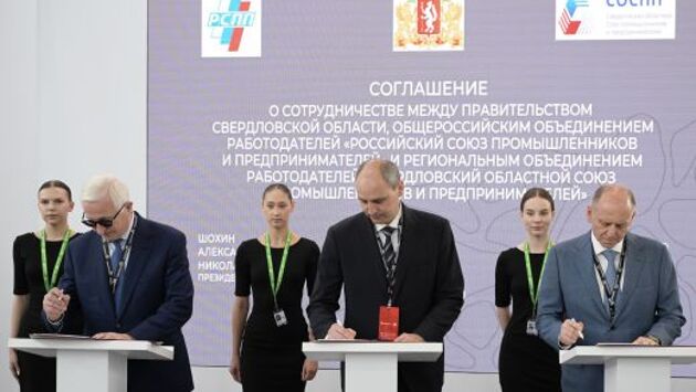 Так, Денис Паслер подписал соглашение о сотрудничестве с общероссийским объединением работодателей — Российским союзом промышленников и предпринимателей — и региональным объединением работодателей — Свердловским областным союзом промышленников и предпринимателей. Подписи под документом также поставили президент РСПП Александр Шохин и президент СОСПП Дмитрий Пумпянский.