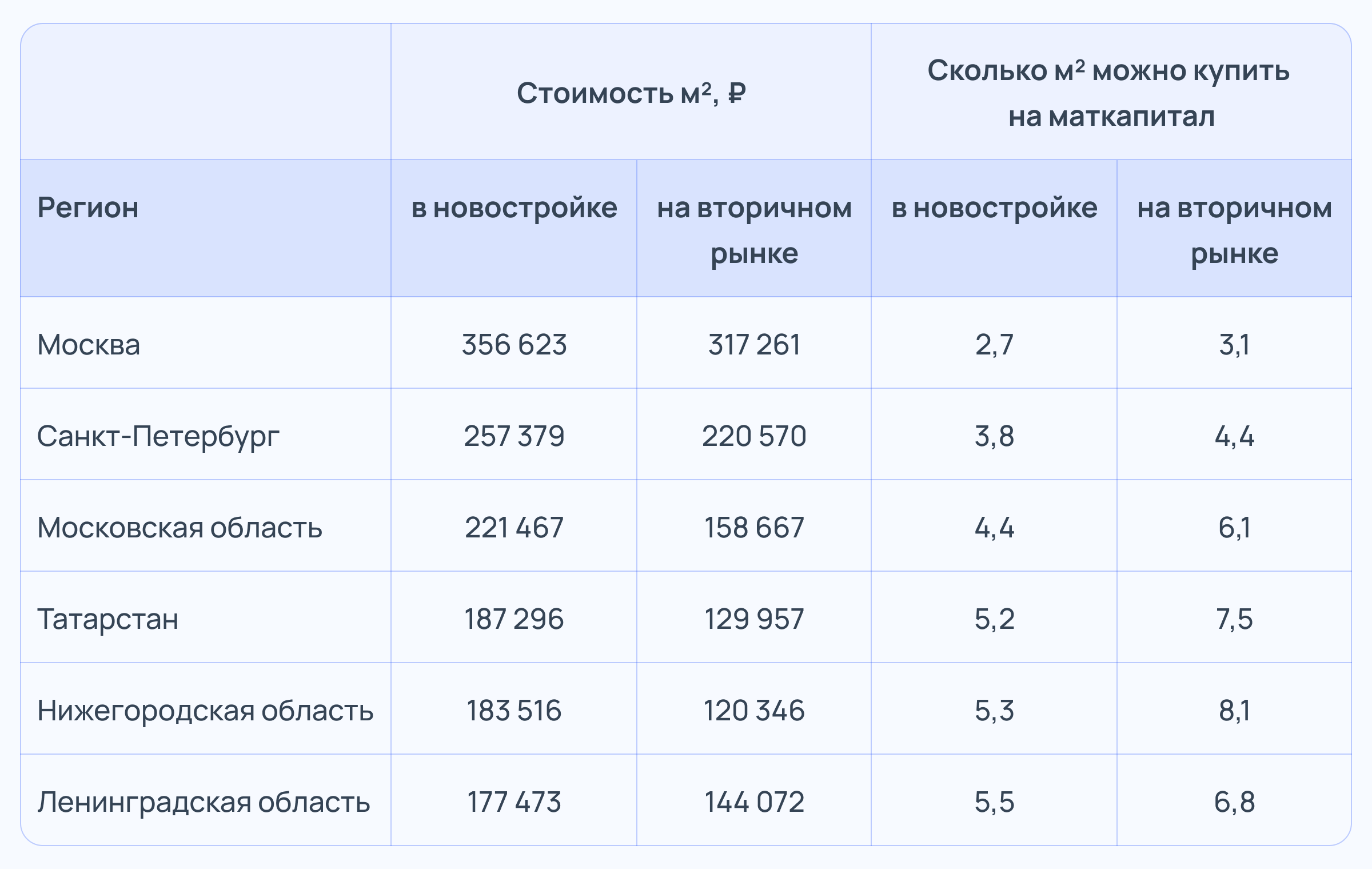 Ожидаемо, что меньше всего квадратных метров жилья на маткапитал можно приобрести в Москве и Санкт-Петербурге.