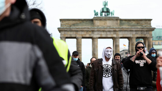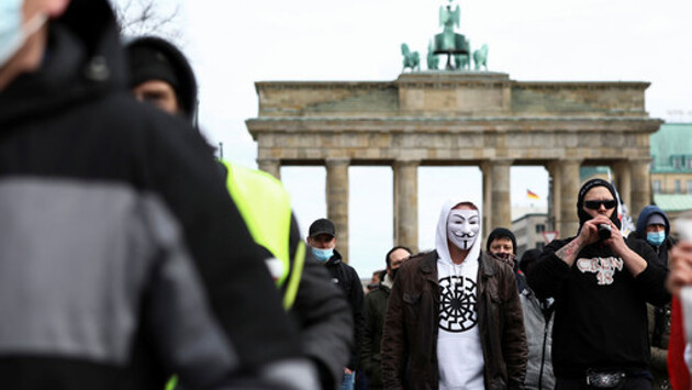В Германии, в нескольких регионах, в пятницу, 20 марта, проходят акции протеста против мер, действующих на время пандемии - в Берлине на такой акции замечены представители крайне-правых и неонацистских организаций, сообщает Reuters. В протестах участвуют также представитель движения Reichsbürger (Граждане Рейха). Им противостоит полиция, а также антифа-движение, участники которого вышли на контр-демонстрацию. Ультраправые активисты открыто носят символику, которую использовали в нацисткой Германии, в том числе заметное на фотографии "Черное солнце". Антифа пришли на демонстрацию с плакатами и транспарантами, на которых написаны матерные и оскорбительные выражения. Сотрудники берлинской полиции проводят задержание протестующих и разграничивают между собой неонацистов и антифа. Также крупные протесты отмечены в городе Кассель, крупном городе федеральной земли Гессен. Там полиция также задерживает протестующих. Ранее актриса разделась на кинопремии "Сезар" в качестве протеста против COVID-мер.