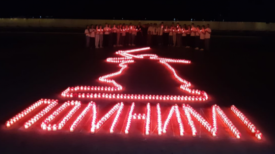 Вечером этого дня, как только смерклось, волонтеры расставили по контурам этой своей картины тысячу горящих «свеч памяти», защищенных специальными устройствами от ветра. Многие жители города, пришедшие сюда, смогли воочию увидеть изображение «Родины-матери», как бы нарисованное прямо на асфальте светом неугасимых, ярко пылающих свеч…