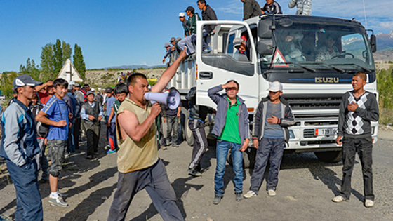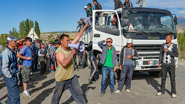 Протестующие в киргизском городе Барскоон. Фото: Abylay Saralayev / AP