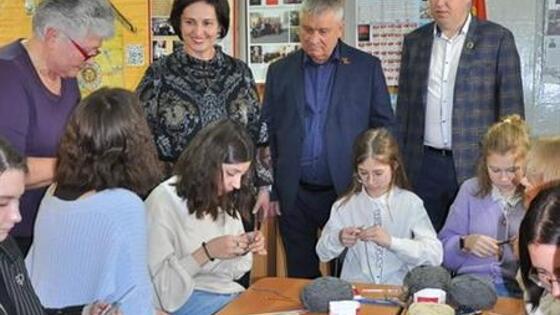 В школьном музее за одним столом собрались и ученицы, и педагоги. С материалами для рукоделия, спицами, нитками помогли депутаты-единороссы.