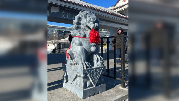 В Благовещенске на входе в парк Дружбы появились китайские львы-стражники