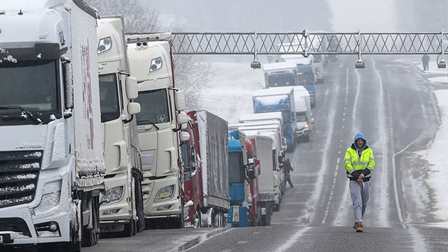 После закрытия КПП между Польшей и Белоруссией на границе образовалась 60-километровая автомобильная очередь