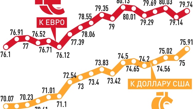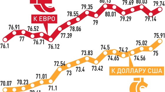 Накануне российская валюта торговалась на Мосбирже возле 75 рублей за доллар и 80 рублей за евро. Месяц назад, в конце января - возле 70 и 76 рублей соответственно. Откуда взялось ослабление? Так, в первом квартале спрос на валюту традиционно снижается. Импортеры меньше закупают товаров из-за низкого сезона, компании меньше погашают внешних долгов, спрос на валюту для туристических поездок за границу падает. Негативный фактор для рубля с начала года - риски обострения геополитики, что поддерживает спрос на валюту в качестве страховки. Против рубля выступают и ожидания сокращения нефтегазовых доходов из-за санкций.