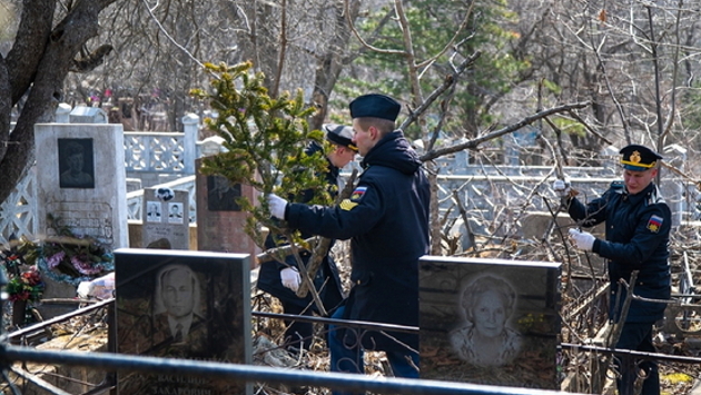 Во Владивостоке на Морском кладбище состоялась патриотическая акция «Гордость»Министерство обороны Российской Федерации09 апреля 2023, 19:00Территорию каждого захоронения очистили от опавших от деревьев веток и сухой листвы.© Министерство обороны Российской ФедерацииРынки