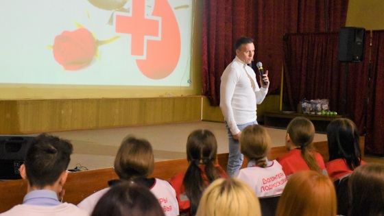 Перед обучающимися колледжа выступил и ветеран предприятия, Почетный донор СССР и Почетный донор России Владимир Лаптев. С 1969 по 2006 гг. он сдал более 35 литров крови и тем самым помог сотням нуждающихся.