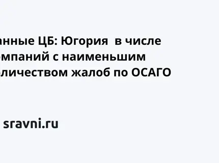 Данные ЦБ: Югория в числе компаний с наименьшим количеством жалоб по ОСАГО
