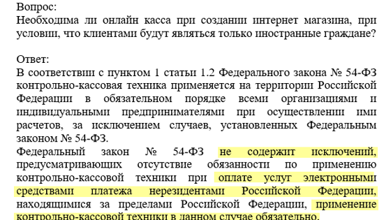 Отвечаем: онлайн-касса нужна, но не только она Раньше интернет-магазины могли работать без кассы, но по новому закону обязаны поставить онлайн-кассу и выдавать чеки. Торговые интернет-площадки или маркетплейсы — это тоже интернет-магазины. И тут вот как: зарубежных площадок российский закон 54-ФЗ не касается, и им не нужно думать об онлайн-кассах. Зато 54-ФЗ касается российских продавцов, и вот они уже обязаны выдавать чеки. Когда нужно выдавать чеки — статья 1.2. закона 54-ФЗ Ответы от налоговиков на частые вопросы по кассам Можно было бы сказать: покупатели живут в другой стране, на них не распространяются российские законы. Да и Пэйпал — зарубежный электронный кошелек. Но нет. Разбираемся по порядку, сначала с иностранцами. Налоговая в феврале сказала, что касса нужна, даже если покупатели — только иностранцы:[IMG name="image1-5.png"] Из ответов налоговой. В законе исключений для иностранцев нет Теперь про Пэйпал. Кажется, что его российские законы тоже не касаются. Но у Пэйпала есть зарегистрированное в России юрлицо Пэйпал Раша. Именно оно переводит деньги на расчетный счет российского продавца. Переводы через Пэйпал — это безналичные расчеты. А закон говорит: при безналичных расчетах нужно тоже выдавать чек. Поэтому если вы станете ИП, нужно будет купить кассу и выдавать чеки. Даже если оплата иностранцам. Даже если по Пэйпалу. Но тут появляются новые сложности. Как быть с отправкой чеков Закон требует отправлять чек сразу после того, как покупатель рассчитается. Для интернет-магазинов есть кассы, которые подключаются к сайту, принимают оплату и сами отправляют чеки. [BLOCK name="Модулькасса"] С Пэйпалом такого не получится: пока ни один производитель не разработал решение, при котором касса обрабатывала бы платежи с Пэйпала. Поэтому по закону продавцу нужно самому отслеживать момент, когда покупатель платит за товар на сайте, и вручную выдавать чек. Это очень неудобно, если продажи на маркетплейсе идут круглосуточно. Есть такие варианты: Выбрать метод оплаты, при котором продавец сам договаривается с покупателем, как ему удобнее заплатить. Например, на зарубежном сайте для продажи рукоделия Этси есть метод оплаты «Other». Там для российских продавцов тоже не очень много вариантов: тот же Пэйпал или перевод через Вестерн Юнион, но можно будет договориться с покупателем и выслать чек в момент оплаты. Дождаться, пока российские разработчики придумают интеграцию с Пэйпалом. Этим занимается, например, Атол Онлайн. Они обещали сделать интеграцию в июне, но теперь перенесли на сентябрь. Скорее всего, можно будет арендовать у них кассу, которая будет обрабатывать платежи с Пэйпала и отправлять чеки. Но как это совместить с иностранным сайтом — нужно узнавать у разработчиков. Эквайринг для иностранных покупателей Открыть свой интернет-магазин, подключить эквайринг и купить кассу. Эквайринг — это оплата по карте. Простой сайт можно сделать самому на конструкторе сайтов, например, на Тильде. Как принимать оплату по картам от иностранных покупателей, мы писали в статье в Деле. Для интернет-магазинов есть кассы, которые сами отправляют чеки и закрывают смену — закон требует, чтобы она длилась максимум сутки. Что еще нужно знать, если откроете ИП Продажа товаров за границу — объемная тема, и об этом мы расскажем в следующий раз. Но если коротко, то вот что 