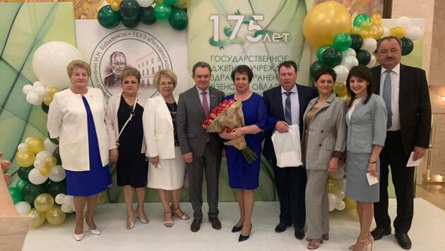 Накануне в драмтеатре состоялось торжественное мероприятие в честь 175-летия со дня основания Пензенской областной клинической больницы имени Бурденко. В основе театрализованного действия, сопровождавшего поздравительные выступления почетных гостей и вручение наград заслуженным работникам больницы, была летопись организации здравоохранения. От лица врио губернатора Олега Мельниченко и регионального правительства коллектив медучреждения приветствовал врио вице-премьера кабмина Вячеслав Космачев. О славных традициях и знаменитых врачах советского времени, чьи имена до сих пор живы в памяти пензенцев, напомнил спикер регионального парламента. Он подчеркнул, что работников пензенского здравоохранения всегда отличали активная гражданская позиция и ответственность перед людьми. Валерий Лидин акцентировал внимание на мужество, готовность к самопожертвованию и профессионализм, которые проявили современные медработники в период пандемии. «Низкий вам поклон за верность призванию, высочайшую компетентность и неравнодушие», – сказал он. Пожелав всем присутствующим здоровья, благополучия и процветания, он передал главврачу клинической больницы имени Бурденко, заслуженному врачу РФ, отличнику здравоохранения Ирине Фроловой приветственный адрес коллективу. В ходе мероприятия заведующей инфекционным отделением, пульмонологу Елене Демчук был вручен Орден Пирогова. Труд врачей, фармацевтов, среднего медперсонала отмечен Почетными грамотами и Благодарностями губернатора Пензенской области, ЗакСобра, минздрава региона, Федерации профсоюзов и органов власти Пензы. Фотографии: zspo.ru