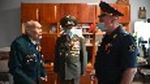 Руководство ГУФСИН России по Новосибирской области поздравило 100-летнего ветерана Великой Отечественной войны и УИС Михаила Сафронова с Днем Победы