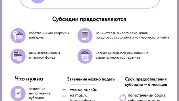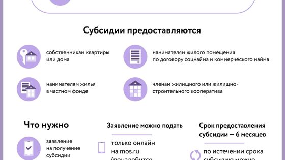 Отмечается, что на субсидию могут претендовать собственники жилья, члены жилищного и жилищно-строительного кооператива, пользователи жилого помещения в государственном или муниципальном жилфонде, а также наниматели жилья по договору найма в частном фонде. Обязательное условие – гражданство России, Белоруссии или Киргизии и постоянная регистрация в Москве.