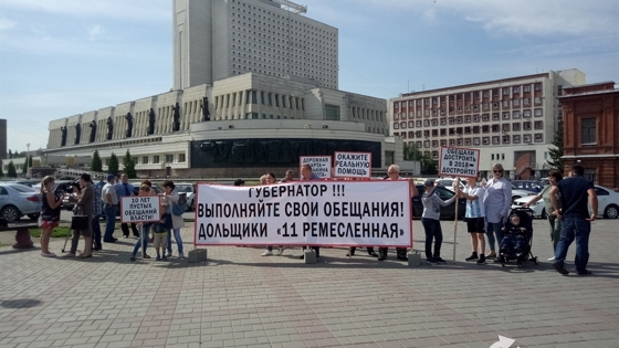 Люди готовы выходить на митинги до тех пор, пока областные чиновники не выполнят свои обещания и не помогут достроить проблемный дом на ул. 11-й Ремесленной. В четвертый раз к библиотеке им. Пушкина с плакатами и транспарантами пришли люди, вложившие деньги в строительство дома № 25 по ул. 11-й Ремесленной. Они пытаются привлечь внимание властей к дому, который строится уже более 10 лет . Застройщиком выступало СМУ-1 КПД Юрия Заборовского. Над строителем уже более полутора лет идет суд, его обвиняют в присвоении почти полумиллиарда рублей средств дольщиков. Сегодня на митинг собралось около трех десятков человек, пришли все, кто смог отпроситься с работы. Некоторые привели с собой детей - среди дольщиков есть многодетные семьи. В 2007 году наша многодетная семья купила в этом доме две квартиры для себя и для родителей, продав имеющееся жилье, - говорит Наталья Кудрявцева. - В 2018 году врио губернатора Александром Бурковым была подписана дорожная карта о выделении на достройку нашего дома 70 % средств. 30 % должны были собрать дольщики. Мы свои обязательства выполнили, но бюджетного финансирования ждем до сих пор. Мы вынуждены жить на даче. А кто-то вложил материнский капитал, взял кредиты по государственной программе, мы просим помощи! Многодетная мать Наталья Кудрявцева Люди сетуют на то, что чиновники собираются просить средства на ремонт Иртышской набережной, и считают, что рациональнее помочь тем, кто остался без крыши над головой. - Ситуация по дольщикам у врио губернатора на контроле, проблема будет решаться, варианты решения ищутся. Можем сказать, что по каждому такому дому ведется работа, - сообщили корреспонденту "Омск Здесь" в пресс-службе областного правительства. Начальник управления информационной работы и защиты информации областного Минстроя Александр Андрюшенков рассказал "Омск Здесь", что ситуация с домом на 11-й Ремесленной обсуждается на каждой рабочей группе министерства. Пути возможности достроить дом изыскиваются, с дольщиками мы работаем. Ситуация с этим конкретным домом находится на особом контроле министерства. Более конкретного - сроков и четких мероприятий - пока назвать не могу, - говорит Андрюшенков. Дольщики же уверяют, что после того как мэр и врио губернатора сообщили, что в областном бюджете денег на достройку многоэтажки нет, чиновники с ними не общаются. Людям приходится самим искать встречи с властями на выездных мероприятиях и задавать неудобные вопросы. Омичами собрано более 20 млн руб., еще 50 млн руб. необходимо выделить из бюджета. "Омск Здесь" продолжит следить за ситуацией. Напомним, ранее митинг проходил на прошлой неделе, когда в Омск приезжал заместитель председателя правительства России Виталий Мутко .