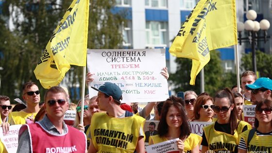В воскресенье 12 августа, несмотря на прекрасную солнечную погоду, располагающую к отдыху с семьей и друзьями, но никак не к митингам, на центральной площади Красногорска собрались несколько сотен человек. Это пострадавшие от Urban Group дольщики, которые пришли требовать от властей, чтобы остановленные стройки немедленно возобновились, и люди получили бы то, за что заплатили деньги — в обещанные сроки и в обещанном виде. И пока они пытаются отстоять свои права, выплачивают кредиты за несуществующее жилье и живут в съемных квартирах, другие покупатели, кому повезло больше, обживаются в новых квартирах и с сочувствием смотрят на брошенные стройки. Не могли не купить "Оказавшись в офисе продаж Urban Group, мы не смогли не купить", — рассказывает со сцены свою историю дольщица "Лесобережного". По ее словам, офис был шикарен, менеджеры очень обходительны, а рендеры и макеты захватывали дух. Решение было принято быстро, после чего семья начала считать дни до сдачи, заодно рекомендуя компанию знакомым. Теперь они в числе полутора тысяч других дольщиков, ожидающих свои квартиры в 15 домах "Лесобережного", большинство из которых едва начали строиться. Таких историй здесь немало. Почти каждого подкупила архитектура комплекса, высокие потолки, "фишки" вроде прудов и мостов за сравнительно невысокую цену. И главное — никто не сомневался в надежности застройщика. Теперь же люди злы не только на непосредственных руководителей компании: звучат призывы привлечь к ответственности продажников, маркетологов и пиарщиков, которые, по мнению дольщиков, продолжали "впаривать" квартиры даже тогда, когда проблемы уже были очевидны. На площади принадлежность дольщика к тому или иному ЖК можно было понять как по плакатам и табличкам в руках, так и по принтам на футболках. Многие были одеты в жилеты-безрукавки, изготовленные по одному шаблону, но отличающиеся цветом в зависимости от объекта. Например, покупатели "Солнечной системы" были в желтых, а "Видного города" в фиолетовых. На всех был один общий слоган "Urban Group. Город, которого нет". Дольщики Urban Group на митинге в Красногорске Требования тоже у всех были одни и те же. Первоочередное — как можно быстрее возобновить стройки. Люди возмущены, что, занявшись проблемой, власти первым делом приостановили строительство — в то, что стройки остановил ещё сам "Урбан", верят не все. По словам митингующих, пока власти вникнут в ситуацию, проведут аудит всех застройщиков группы, определят, кто и как будет достраивать, может пройти немало времени. При этом состояние недостроев может ухудшиться, а многим приходится платить ипотеку даже тогда, когда на стройплощадках ничего не происходит. Поэтому в резолюции митинга также содержалось требование о моратории на проценты по кредитам на сроки, превышающие те, которые прописаны в ДДУ. Возмущены люди и тем, что если жилье они рано или поздно всё-таки получат, что будет с нежилыми помещениями, непонятно. "Нам очень нравилась концепция "двор без машин", поэтому, конечно же, мы купили машиноместо в подземном паркинге. А его даже не начали строить, и есть большие сомнения, что начнут. Но мы полностью его оплатили и не знаем, вернут ли нам эти деньги", — рассказывает молодая пара. Он — программист, она — дизайнер, ждут квартиру в "Опалихе О3", а пока арендуют в Москве. Среди пришедших на площадь в осн