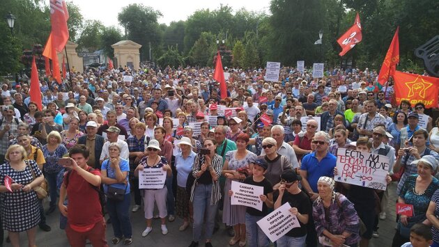 Жители Самары потребовали расформировать Пенсионный фонд России за ненадобностью. Это один из пунктов резолюции, которую в воскресенье, 2 сентября, приняли участники крупного митинга против повышения пенсионного возраста. Мероприятие состоялось в сквере «Родина» и по оценкам организаторов, собрало около 8 000 участников. Акция протеста состоялась на непартийной основе. Всего на импровизированной сцене в течение двух часов — с 12:00 до 14:00 — выступили более 20 человек. — Сейчас, в основном, уходят молодые, до 50 лет, — констатировал со сцены ветеран ВОВ Николай Старыгин. — Сходите на кладбище, посмотрите на могилах даты: умирают 35-40-летние. — Деньги на пенсии есть, национализируйте добычу природных ресурсов и запретите вывод капитала, тогда у вас будет даже резерв на повышение пенсий в два раза, — обращаясь к руководству России, сказал со сцены другой выступающий. Участники митинга призвали всех горожан идти на выборы, и вдумчиво отнестись к своему выбору. В перерыве между речами активистов выступили музыканты группы «Неведомая земля». Они исполнили композицию, которую они, по их собственному признанию, сочинили под впечатлением от видеообращения Владимира Путина по поводу пенсионной реформы. В финале акции зачитали резолюцию. В ней, в том числе, содержатся такие требования: «Требуем отменить повышение пенсионного возраста, пенсионные вклады, которые заведены на каждого гражданина, должны быть его личным наследуемым вкладом. Вместо Пенсионного фонда — завести личный счет накопительный каждого из людей в госбанке. Человек живет на проценты, а все, что остается после его смерти, наследуется. Пенсионный фонд расформировать за ненадобностью»; «От правительства области требуем вернуть льготы пенсионерам и инвалидам, которые действовали в Самарской области по состоянию на 1 января 2017 года, включая безлимитный проезд на общественном транспорте, и стопроцентную компенсацию расходов на ЖКХ». Резолюцию приняли почти единогласно, но, правда, нашелся один участник, который проголосовал против. На это ведущий митинга, депутат Самарской губернской думы Михаил Матвеев тут же отреагировал: — Вот она, уличная демократия! Организаторы митинга сообщили всем присутствующим, что следующую акцию они наметили на 8 сентября, когда собираются маршем пройти по проспекту Ленина. Мэрия не согласовала это мероприятие, но активисты обжаловали это решение в суде. И на 22 сентября планируется еще один митинг, также в сквере «Родина». Так это будет последняя суббота перед 24 сентября, когда Государственная дума России будет рассматривать скандальный законопроект во втором чтении.