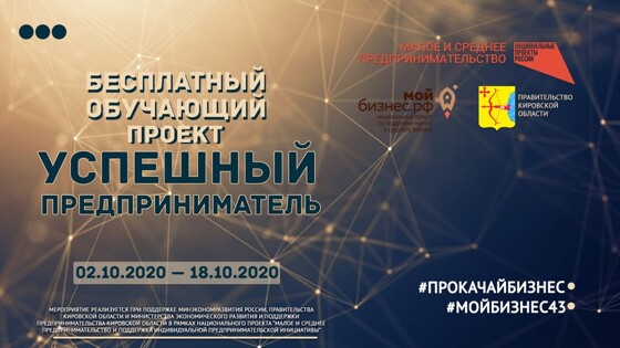 2020 год для малого и среднего бизнеса стал серьезным испытанием на прочность и выносливость. Одни компании, не понимая, как перестроить бизнес в новых реалиях просто ушли с рынка, другие перешагнули за порог рентабельности и попали в зону убытков. Сегодня успешным на рынке может быть только тот предприниматель, который понимает все бизнес-процессы, тренды и может принимать взвешенные обоснованные стратегические решения по своему бизнесу. Экономика знаний выходит на первый план, именно поэтому предпринимателям необходимо постоянно повышать свой уровень бизнес-компетенций. Бесплатный обучающий проект «Успешный предприниматель» пройдет в Кирове со 02 по 18 октября 2020г. и станет интересной образовательной площадкой для представителей бизнеса региона для получения новых знаний и обмена опытом по вопросам развития своего бизнеса. Обучающий проект ориентирован на руководителей, учредителей и сотрудников малого и среднего бизнеса. Спикеры проекта – практики в сфере управления бизнесом и продвижения компаний регионального и федерального уровня. Программа включает несколько модулей: Ступак Артём (Москва) Лидерство как предпосылка к успешному бизнесу Бокарева Вера (Москва) Интернет-маркетинг и продажи. Технологии делового общения Культура деловой этики и имидж Васильева Елена (Москва) Инвестиции, юридические и бухгалтерские аспекты. Команда, схемы организационных структур компании, понятие корпоративной культуры, управление трудовыми ресурсами Шуваева Ирина (Санкт-Петербург) Аудит бизнеса и постановка целей Бизнес-процессы и управление задачами Четко и пошагово вы получите инструкции по развитию вашего бизнеса и узнаете о ключевых компетенциях успешного предпринимателя. Количество мест ограничено! С подробными расписанием и программой обучения можно ознакомиться, перейдя по ссылке . Участие для представителей малого и среднего бизнеса – бесплатное. Регистрируйся прямо сейчас на сайте: прокачайбизнес43.рф Для регистрации необходимо до 02 октября 2020 года заполнить заявку, перейдя по ссылке. Подробности по телефону: 43-43-49 Мероприятие реализуется при поддержке Минэкономразвития России, Правительства Кировской области и Министерства экономического развития и поддержки предпринимательства Кировской области в рамках национального проекта «Малое и среднее предпринимательство и поддержка индивидуальной предпринимательской инициативы». Подробнее об этом и других бесплатных мероприятиях можно узнать по тел. 410-410 или на сайте центра «Мой бизнес» мойбизнес-43.рф (16+) Возрастное ограничение: 16+
