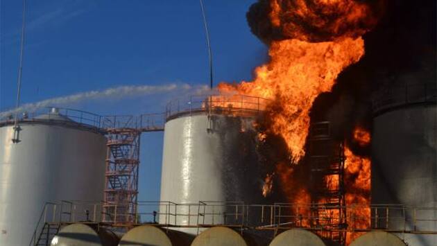 Беспилотник подорвал нефтебазу в Донецке