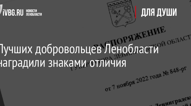 Лучших добровольцев Ленобласти наградили знаками отличия
