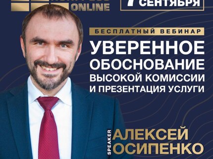 7 сентября состоится авторский вебинар: «Уверенное обоснование высокой комиссии и презентация услуги»