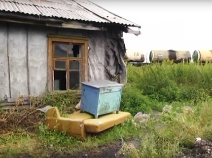 Мародеры разбирают ветхий дом, из которого еще не съехала семья