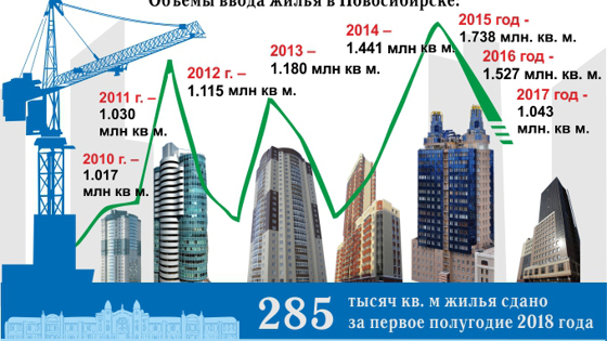 Знаковую цифру в миллион квадратных метров в год ввода жилья Новосибирск превысил в 2010–м , достигнув максимума - 1,738 миллиона квадратов по итогам 2015 года. С 2016 года объемы сдачи начали сокращаться. Темпы жилищного строительства в 2018 году значительно медленнее, чем в прошлом году. 285 тысяч квадратных метров сдано за первое полугодие 2018 года, за этот же период в прошлом году - 410 тысяч было построено в столице Сибири. Падение или «штопор»? Корреспондент VN.ru изучил возможности по достижению отметки в миллион квадратных метров жилья к концу текущего года. Официальная статистика: 2017 - сдано 1,043; 2016 - 1,527; 2015 - 1,738; 2014 - 1,441; 2013 - 1,180; 2012 - 1,115; 2011 - 1, 030; 2010 - 1,017. Объемы ввода жилых домов в Новосибирске сокращаются второй год подряд, предупреждал в начале текущего года начальник управления архитектурно-строительной инспекции мэрии Новосибирска Анатолий Мотыга. Рост рынка строительства продолжался до 2015 года, когда в Новосибирске было сдано 1,738 миллиона квадратных метров жилья. В 2016 году начался спад объемов строительства - было сдано 1,527 миллиона. В 2017 году сокращение продолжилось обвально – сдано 1,043 миллиона. Ситуация на рынке практически вернулась к показателям 2010 года, когда было сдано 1,017 миллиона квадратов. Согласно данным территориального органа федеральной службы государственной статистики по Новосибирской области, в первом полугодии 2018 года на территории Новосибирска сдано 285,4 тысячи квадратных метров жилья. Для сравнения: за первые 6 месяцев прошлого года в Новосибирске введено в строй 410 тысяч метров жилья. Многие новостройки отличаются отличным качеством и уютными благоустроенными дворами. Фото Виктора Боровских По данным управления архитектурно-строительной инспекции мэрии города Новосибирска за 8 месяцев 2018 года в Новосибирске сдано в эксплуатацию 345 430 квадратных метров жилья. Соответственно, чтобы достичь планки в миллион, необходимо за оставшиеся три месяца до Нового года сдать более 654 тысяч квадратов. Таким образом, на данный момент темпы ввода жилья демонстрируют сильное торможение. Однако специалисты стройнадзора Новосибирской области считают, что к концу года объемы ввода жилья будут сопоставимы с прошлогодними. В начале августа 2018 года на пресс-конференции в ТАСС и. о. заместителя начальника инспекции государственного строительного надзора Новосибирской области Сергей Симонов рассказал об объемах жилья, введенного в строй. «Мы видим, что объем ввода жилых помещений в Новосибирской области увеличился, основное увеличение идет за счет индивидуального строительства и собственных средств физлиц, либо за счет заемных средств. По статистике, сейчас ввод жилья (в Новосибирске) меньше, но думаю, что слишком больших расхождений с итогами прошлого года не будет», - сказал Сергей Симонов. «Строители давят на власть падением объемов» Смогут ли по итогам 2018 года строители достигнуть объема миллион квадратных метров жилья в Новосибирске, зависит от очень многих факторов, перечисляет эксперт - директор компании RID Analytics Елена Ермолаева в беседе с корреспондентом VN.ru. Фактор номер один – насколько в этом году местным властям необходимо показать высокий показатель ввода объема жилья, высокие результаты? Обычно это бывает в период выборов глав города или области. Таких примеров мы видели много. Например, в 2009 году, чтобы сильно 